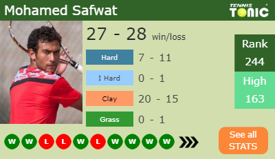 Safwat has a 27-28 win-loss record in 2019, 20-15 on clay (See FULL STATS).