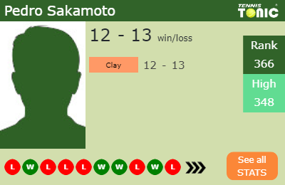 Sakamoto has a 12-13 win-loss record in 2019, 12-13 on clay (See FULL STATS).