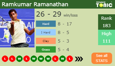 - Ramkumar RamanathanRamanathan – Tommy RobredoRobredo (0-0) – See H2H details
