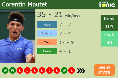 Moutet’s best result of the current year was reaching the final in the Lyon Challenger,the Samarkand Challenger and the Chennai Challenger.