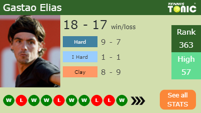 Elias has a 18-17 win-loss record in 2019, 8-9 on clay (See FULL STATS).