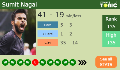 Sumit has a 41-19 win-loss record in 2019, 35-14 on clay (See FULL STATS).