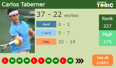 Taberner has a 37-22 win-loss record in 2019, 32-14 on clay (See FULL STATS).
