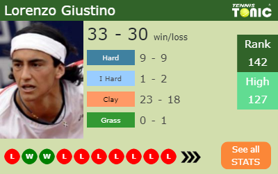 This will be the 3rd time that Lorenzo Giustino and Carlos Taberner square off. The head to head is 1-1 for Giustino and Taberner (see full H2H stats),but they are 1-1 on clay.