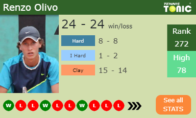 Olivo has a 24-24 win-loss record in 2019, 15-14 on clay (See FULL STATS).