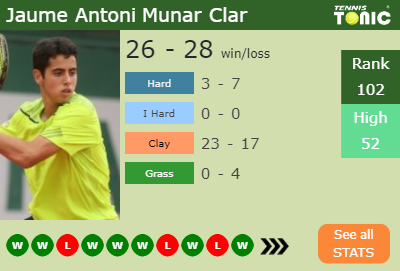 The pick for Tennis Tonic is Jaume Antoni Munar Clar who should win in 2 sets.
