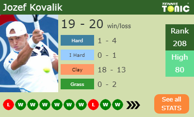 Jozef has a 19-20 win-loss record in 2019, 18-13 on clay (See FULL STATS).