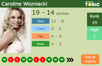 Caroline has a 19-14 win-loss record in 2019, 11-8 on hard (See FULL STATS).