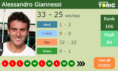 Giannessi has a 33-25 win-loss record in 2019, 32-22 on clay (See FULL STATS).