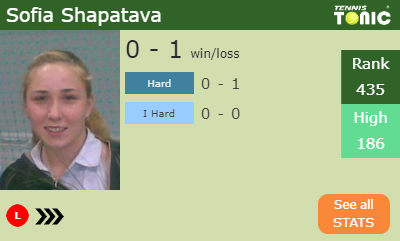 Sofia has a 0-1 win-loss record in 2019, 0-1 on hard (See FULL STATS).