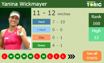 Yanina has a 11-12 win-loss record in 2019, 7-10 on hard (See FULL STATS).