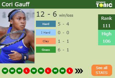 Gauff has a 12-6 win-loss record in 2019, 0-0 on I.hard (See FULL STATS).