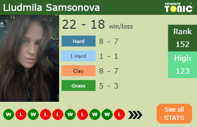 - Ludmilla SamsonovaSamsonova – Cori GauffGauff (0-0) – See H2H details