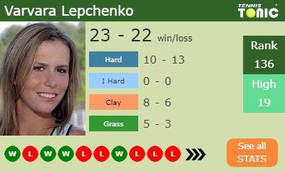 This will be the 3rd time that Pauline Parmentier and Varvara Lepchenko play each other. The head to head is 2-0 for Parmentier (see full H2H stats), 1-0 on I.hard.