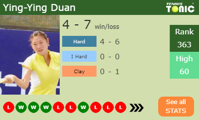 Duan has a 4-7 win-loss record in 2019, 4-6 on hard (See FULL STATS).