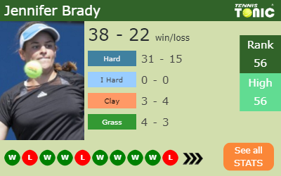 This will be the 2nd time that Jennifer Brady and Ons Jabeur fight against each other. The head to head is 1-0 for Brady (see full H2H stats), 1-0 on hard.