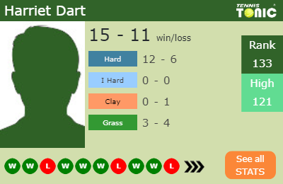 Dart has a 15-11 win-loss record in 2019, 12-6 on hard (See FULL STATS).