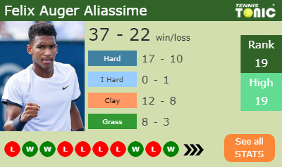 The Canadian has a 37-22 win-loss record in 2019, 17-10 on hard (See FULL STATS).
