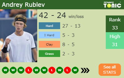 Rublev has a 42-24 win-loss record in 2019, 27-13 on hard (See FULL STATS).