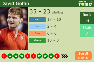 Goffin’s best result of the year was getting to the final in Cincinnati and Halle.