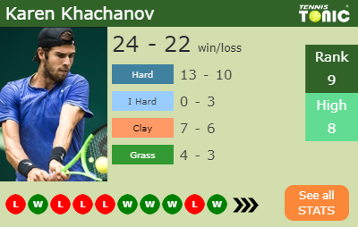 Khachanov has a 24-22 win-loss record in 2019, 13-10 on hard (See FULL STATS).