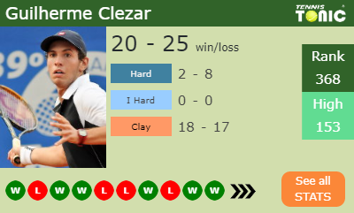 Guilherme has a 20-25 win-loss record in 2019, 18-17 on clay (See FULL STATS).