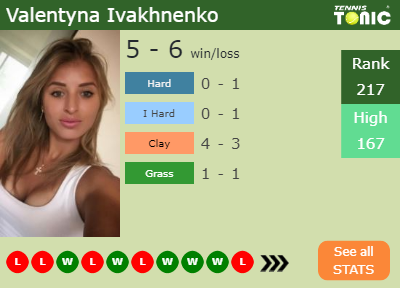 - Valentyna IvakhnenkoIvakhnenko – Anhelina KalininaKalinina (0-0) – See H2H details
