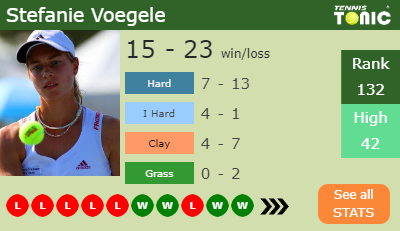 There is no head to head record between Stefanie Voegele and Marta Kostyuk since this will be the first time that they will face off at pro level.However, they played each other in challengers. Therefore their H2H is 1-0 for Kostyuk.
