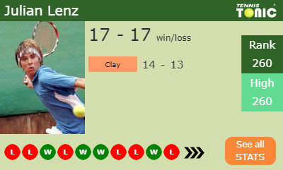 Lenz’s best result of the current season was getting to the semi-finals in the Augsburg Challenger and the Parma Challenger.