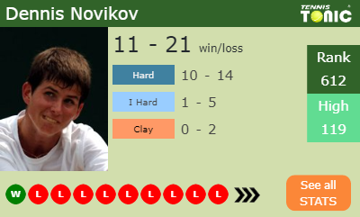 Dennis has a 11-21 win-loss record in 2019, 10-14 on hard (See FULL STATS).