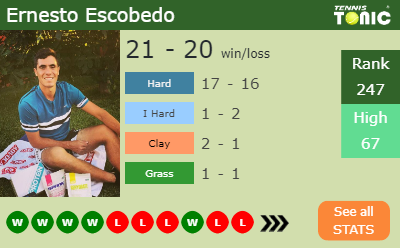 Ranked no. 247, Escobedo will start his run in Las Vegas Challenger after he played his last match in Fairfield Challenger where he lost 7-5 6-4 to King in the 2nd round the 9th of October.
