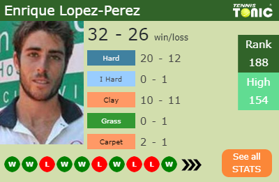 Enrique has a 32-26 win-loss record in 2019, 20-12 on hard (See FULL STATS).