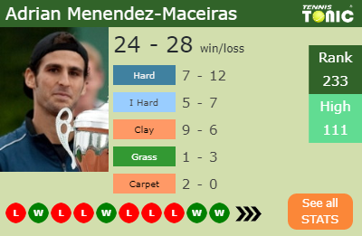 - Jiri VeselyVesely – Adrian Menendez-MaceirasMenendez-Maceiras (1-0) – See H2H details
