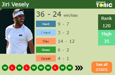 Vesely has a 36-24 win-loss record in 2019, 4-1 on carpet (See FULL STATS).