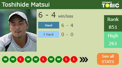 Matsui has a 6-4 win-loss record in 2019, 6-4 on hard (See FULL STATS).