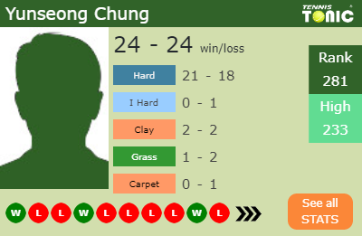 Chung has a 24-24 win-loss record in 2019, 21-18 on hard (See FULL STATS).