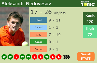 This will be the 4th time that Aleksandr Nedovesov and Tobias Kamke face off. The head to head is 3-0 for Kamke (see full H2H stats), 1-0 on I.hard.
