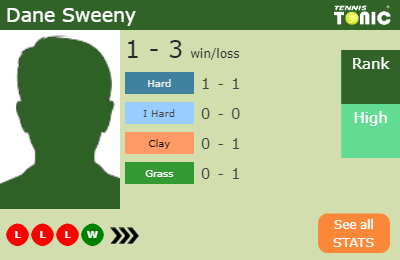 Sweeny has a 1-3 win-loss record in 2019, 1-1 on hard (See FULL STATS).