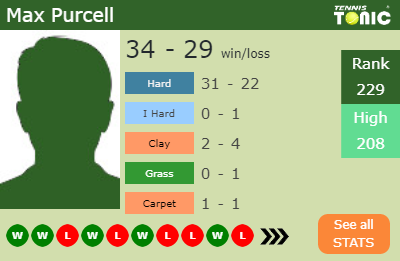 Purcell has a 34-29 win-loss record in 2019, 31-22 on hard (See FULL STATS).