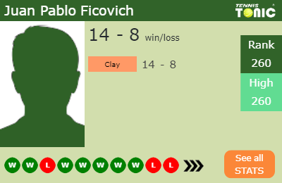 The Argentine has a 14-8 win-loss record in 2019, 14-8 on clay (See FULL STATS).