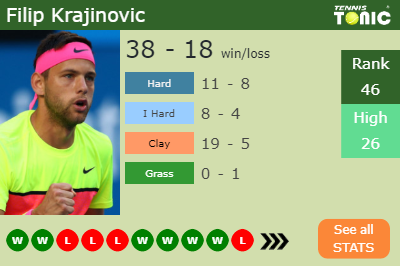 This will be the 3rd time that Laslo Djere and Filip Krajinovic fight against each other. The head to head is 2-0 for Krajinovic (see full H2H stats), 1-0 on I.hard.