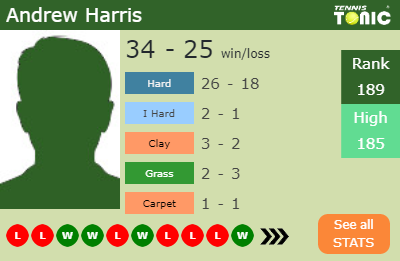Harris has a 34-25 win-loss record in 2019, 26-18 on hard (See FULL STATS).