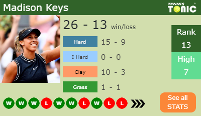 The American has a 26-13 win-loss record in 2019, 15-9 on hard (See FULL STATS).