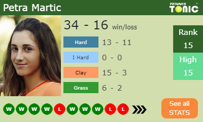 Petra has a 34-16 win-loss record in 2019, 13-11 on hard (See FULL STATS).