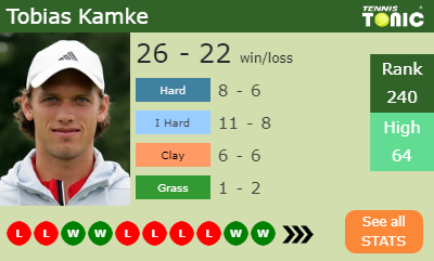The German has a 14-15 win-loss record in 2019, 9-4 on I.hard (See FULL STATS).
