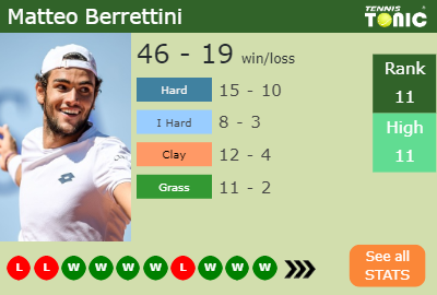 The last time that they played, Berrettini won 7-68 6-4 in the quarter in the Shanghai back in October 2019.