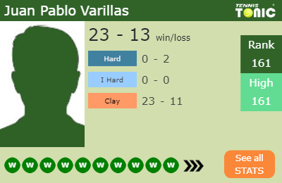 Juan has a 23-13 win-loss record in 2019, 23-11 on clay (See FULL STATS).