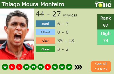 The Brazilian has a 44-27 win-loss record in 2019, 35-18 on clay (See FULL STATS).