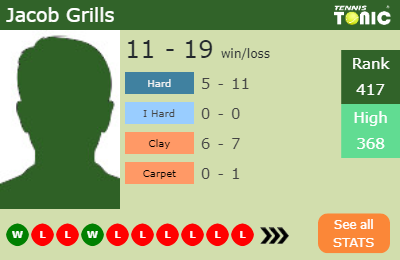 Jacob has a 11-19 win-loss record in 2019, 5-11 on hard (See FULL STATS).