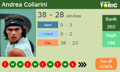 As per the initial odds, Andrea Collarini is the pick to win this match.